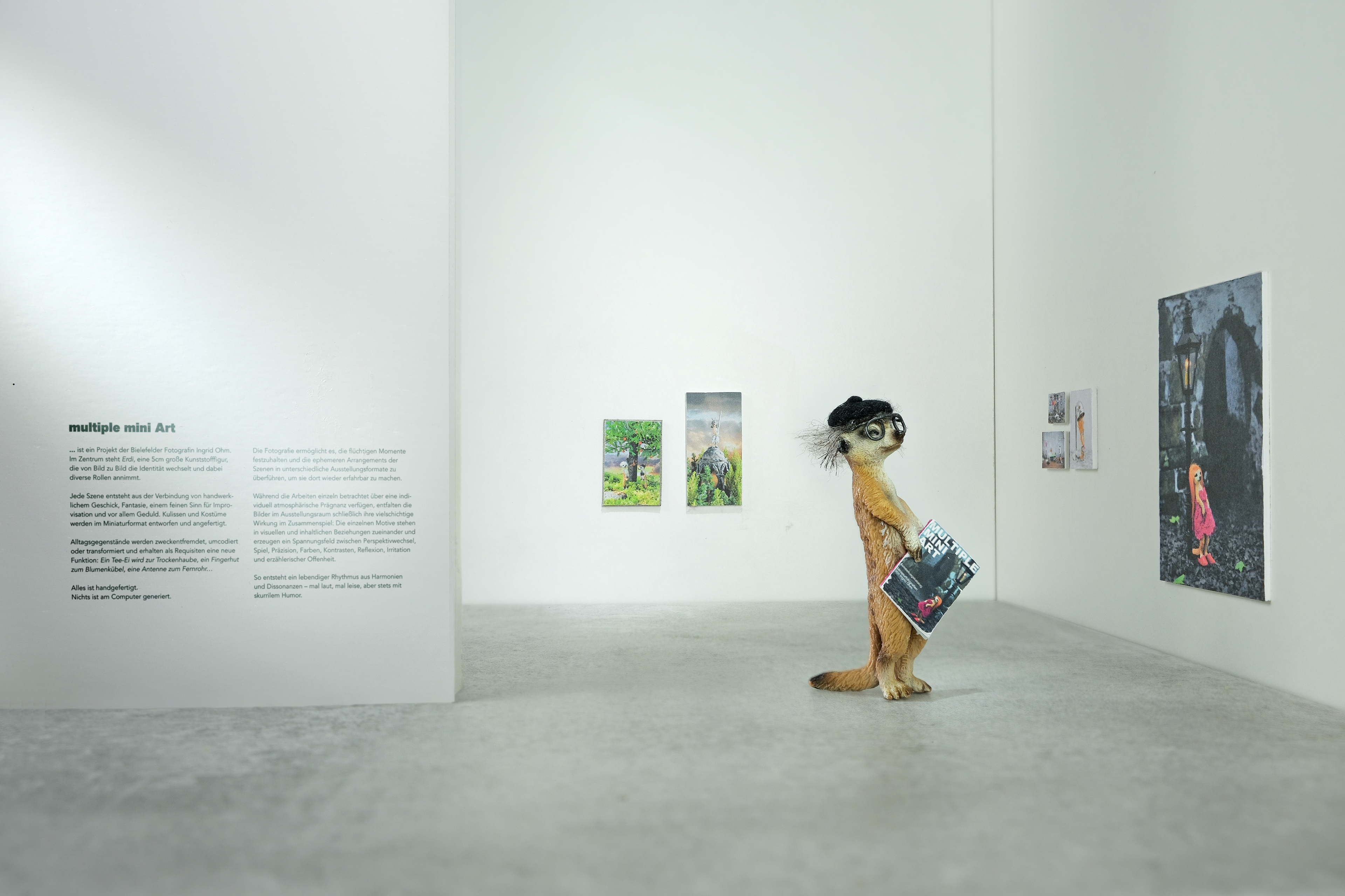 multiple-mini-Art ist ein Projekt der Bielefelder Fotografin Ingrid Ohm. Im Zentrum steht Erdi, eine 5cm große Kunststofffigur, die von Bild zu Bild die Identität wechselt und dabei diverse Rollen annimmt.